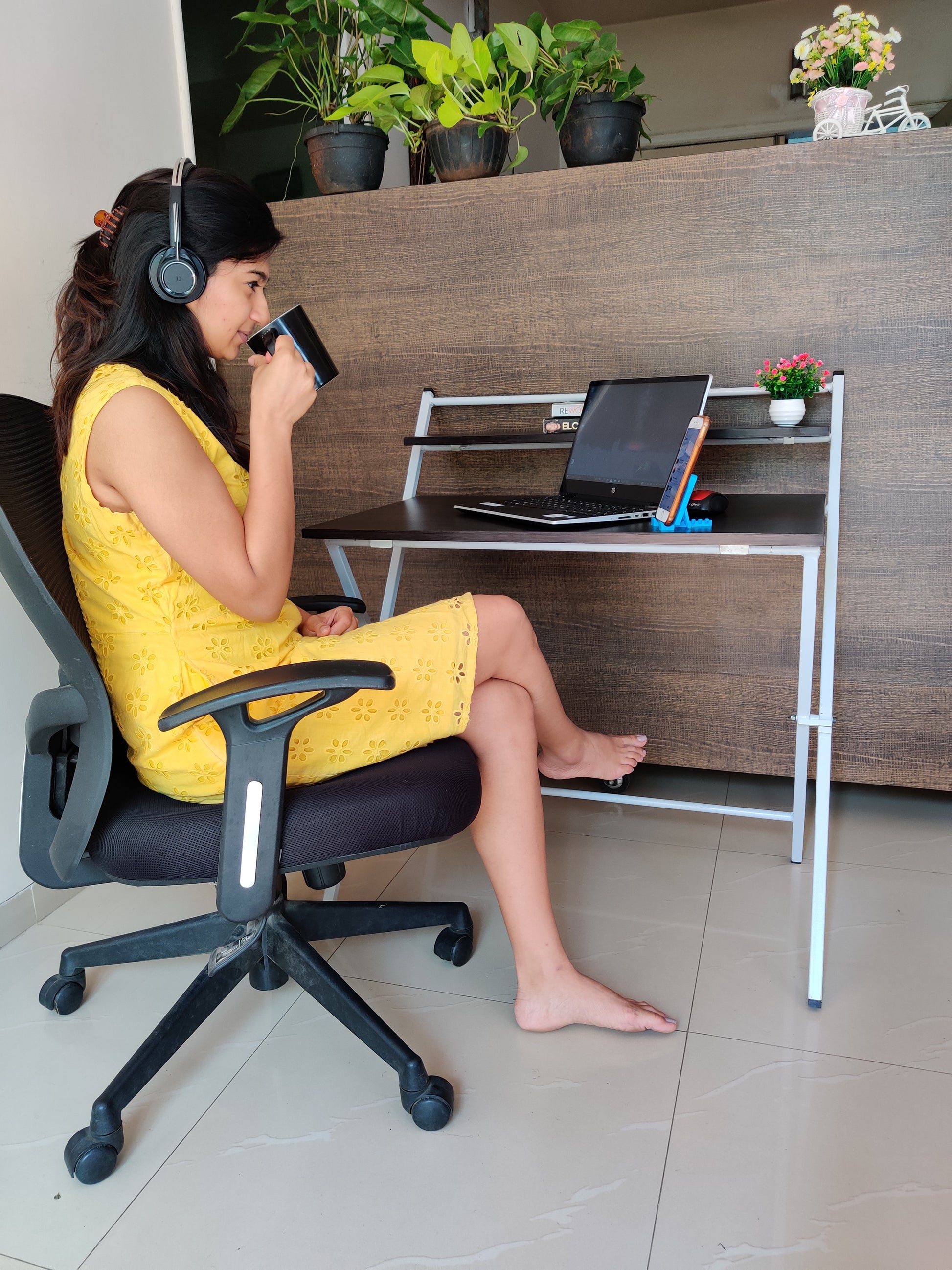 - Keeping laptop on the top level for watching a movie and placing your food or snacks on the lower level